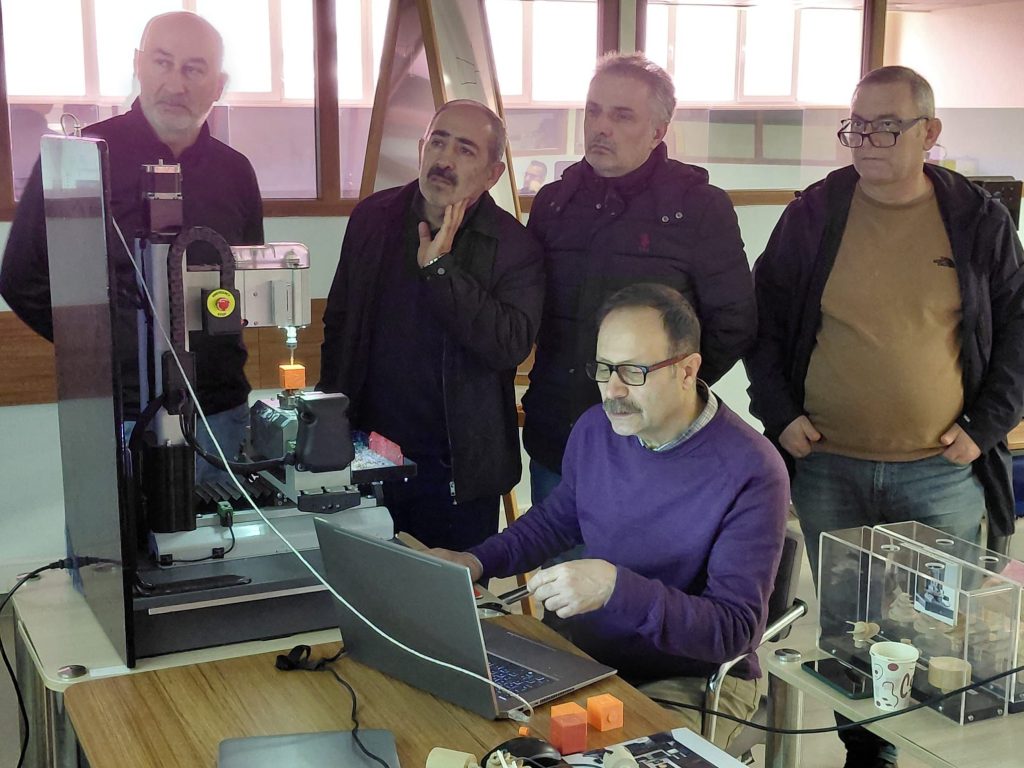 Tophane SMM koordinasyonunda yürütülen ve bir ay sürmesi planlanan hizmet içi eğitim programının ilk aşaması, ERTEV atölyelerinde gerçekleştirilen yoğun yüz yüze oturumlarla başladı. Katılımcı öğretmenler; çok eksenli üretim, takım yolu oluşturma ve simülasyon süreçleri üzerine uygulamalı çalışmalar yürüterek teknik yetkinliklerini geliştirme fırsatı buldular. Programın ilk üç günü, öğretmenlerin atölye ortamındaki pratikleriyle verimli bir şekilde tamamlandı.